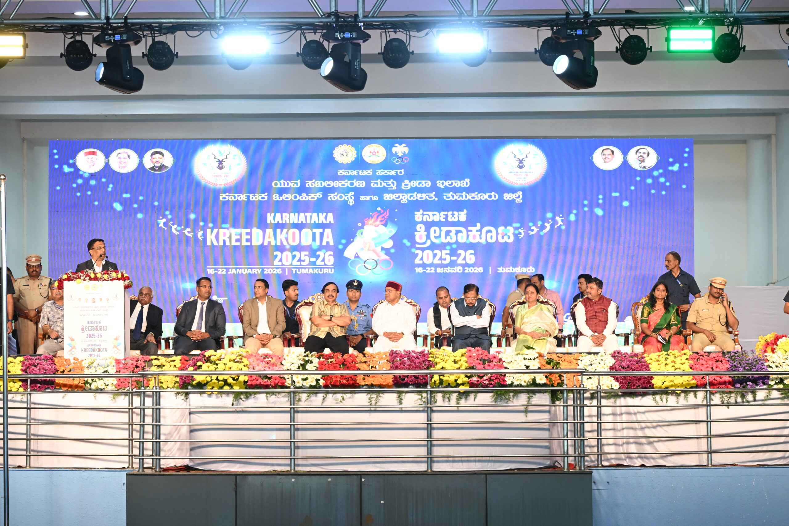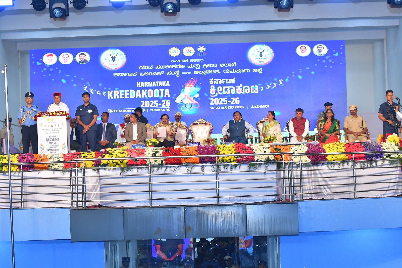 The event concluded with the lowering of the flag, formally closing the Karnataka Kreedakoota 2026.