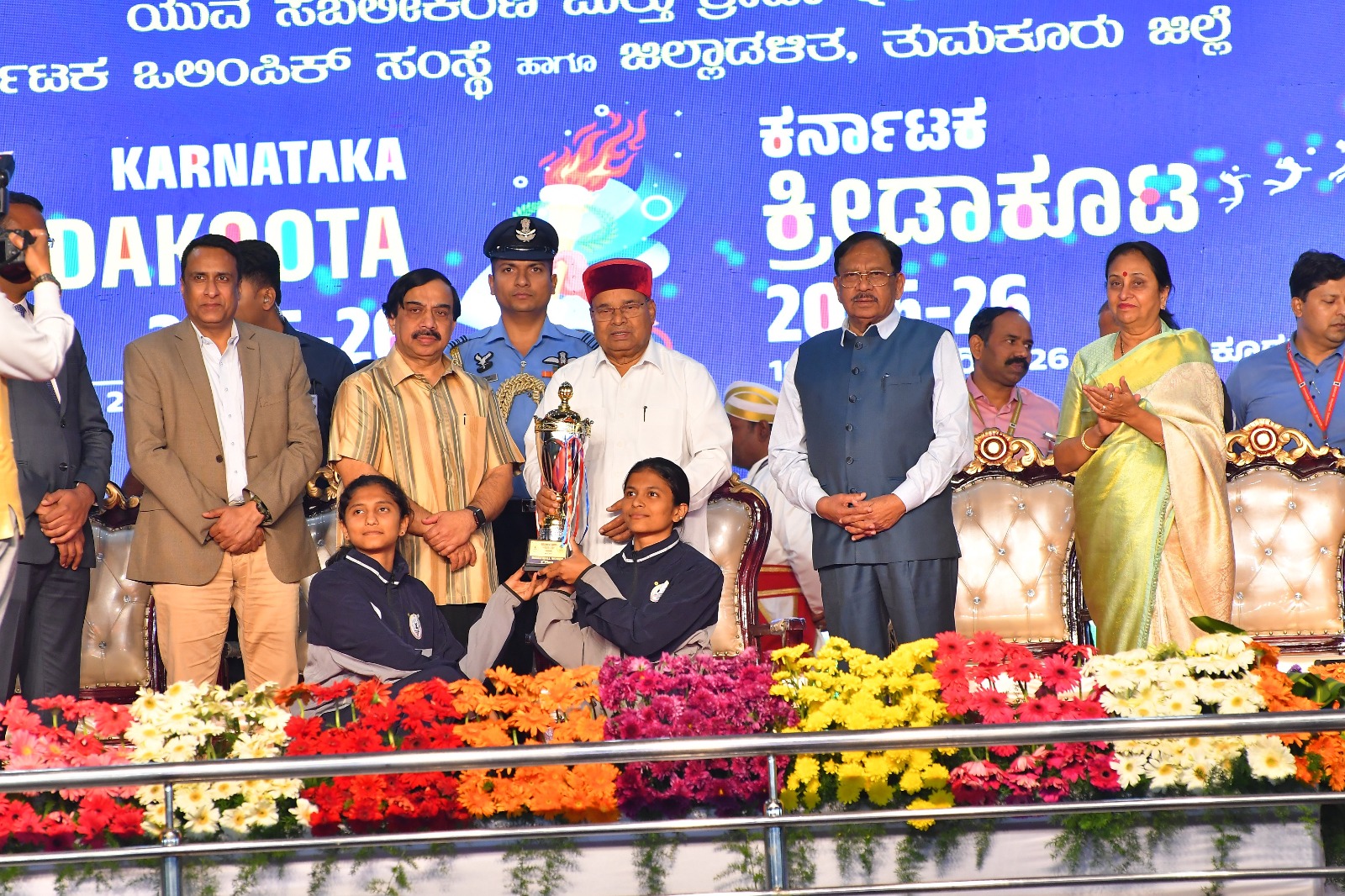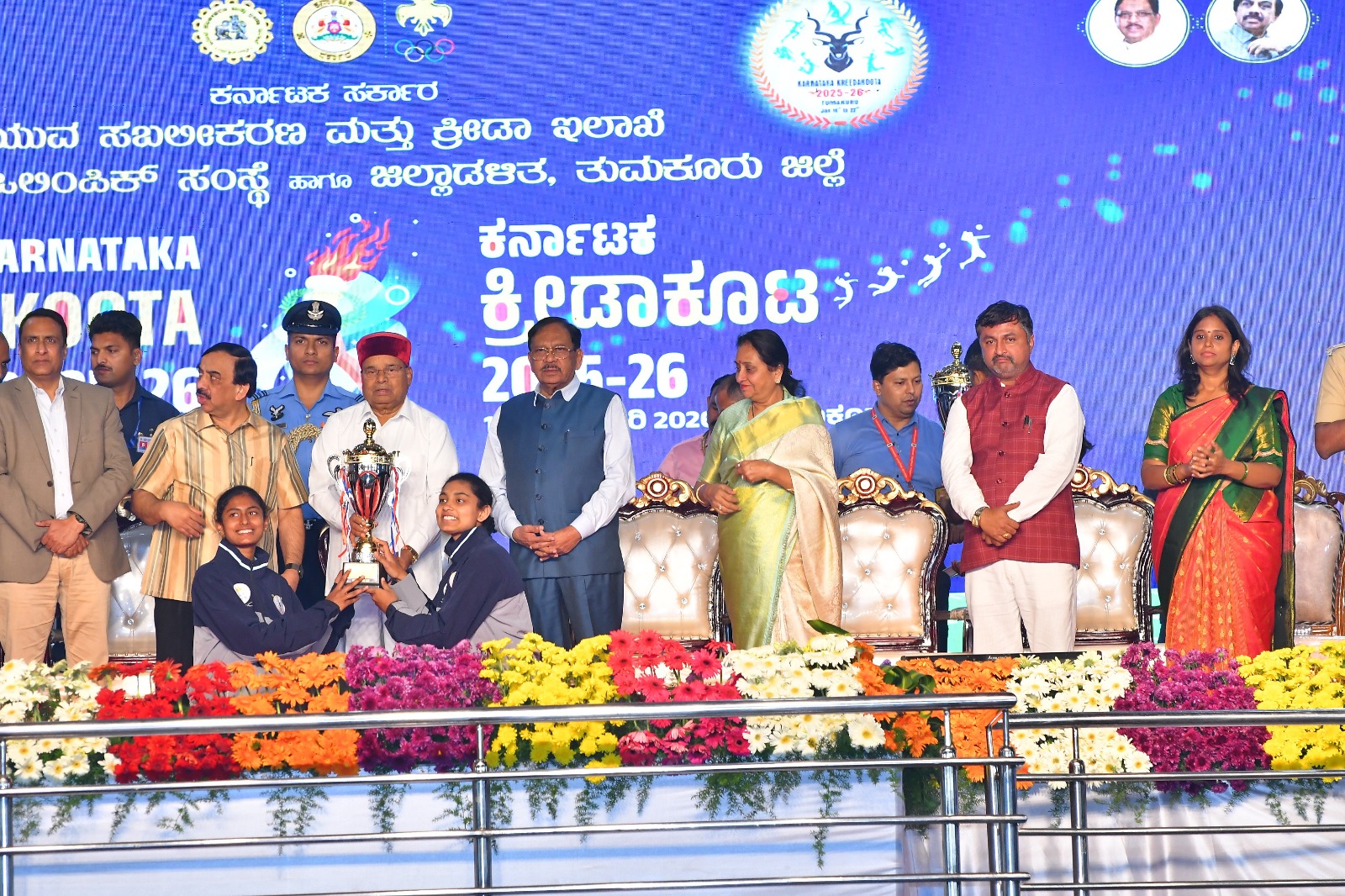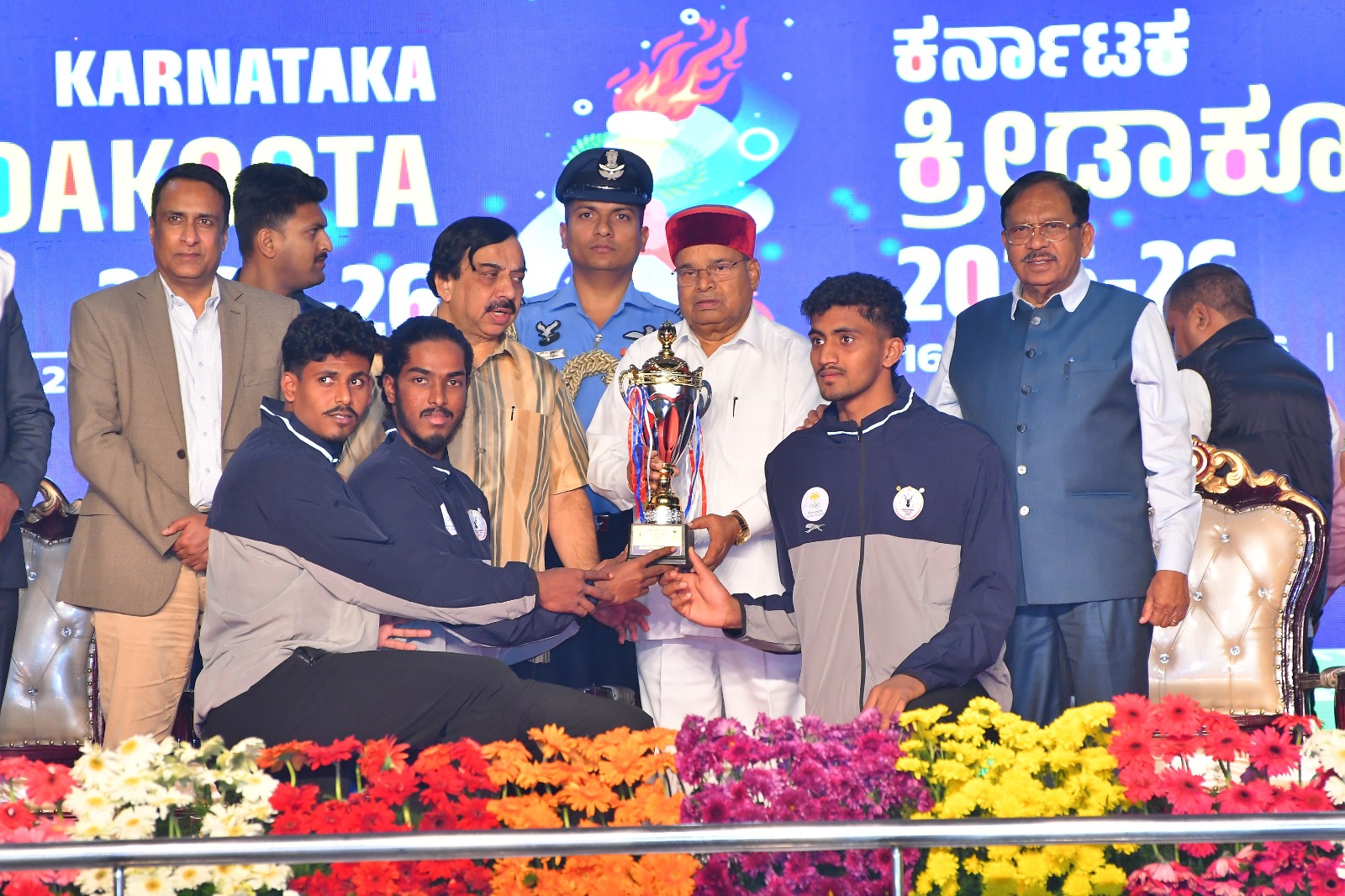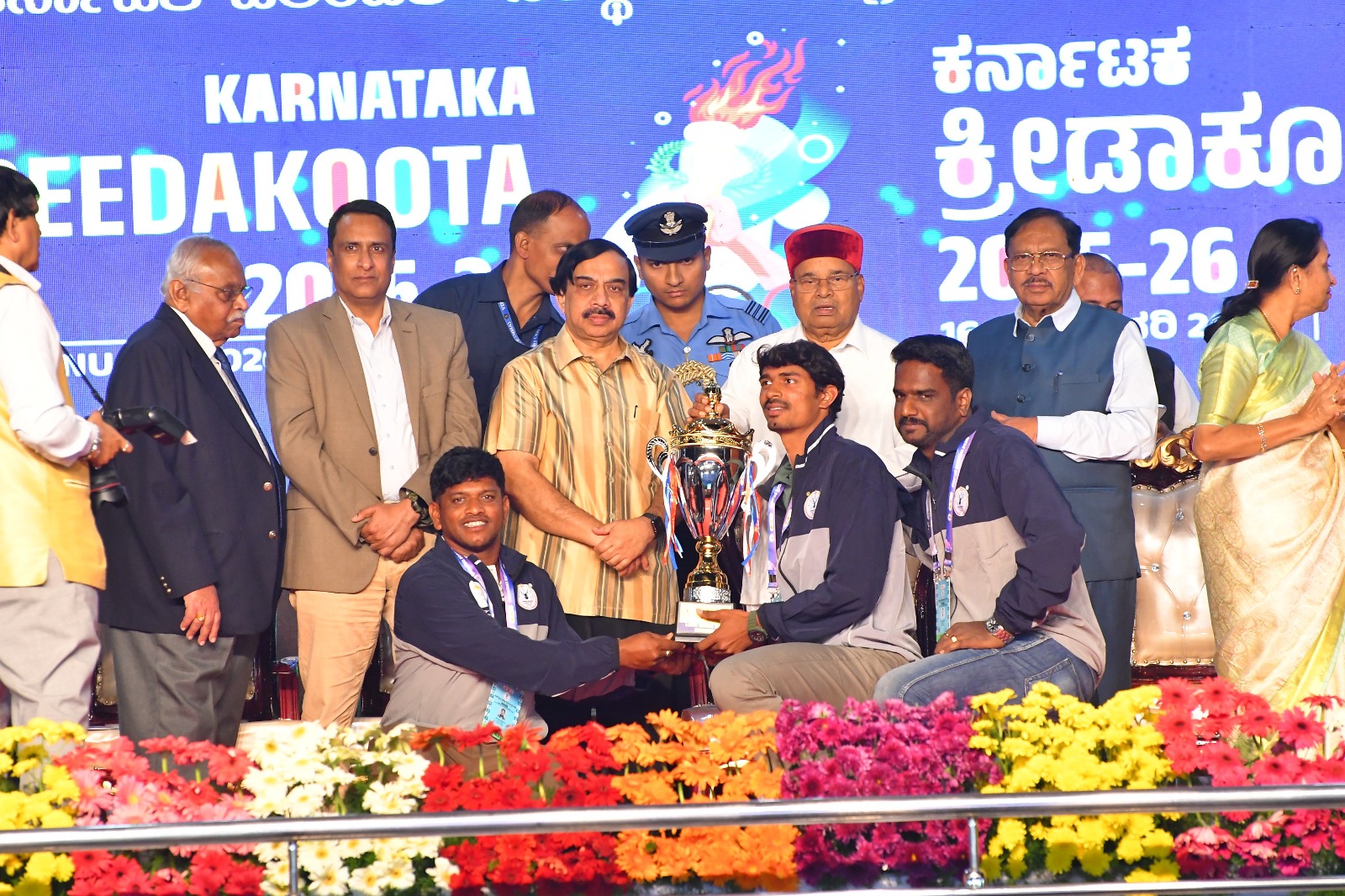 The Governor presented the Overall Championship Trophy to the Bengaluru Urban contingent.