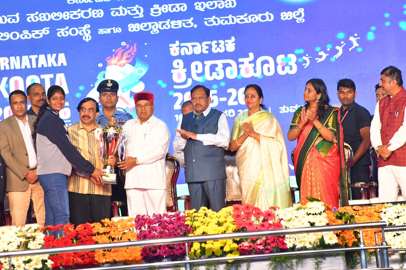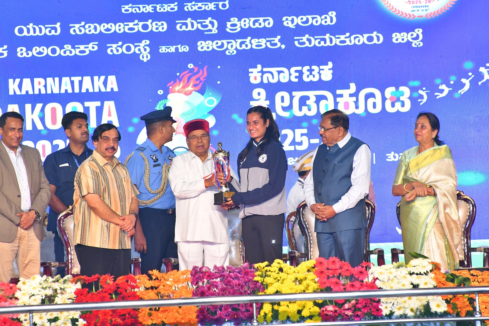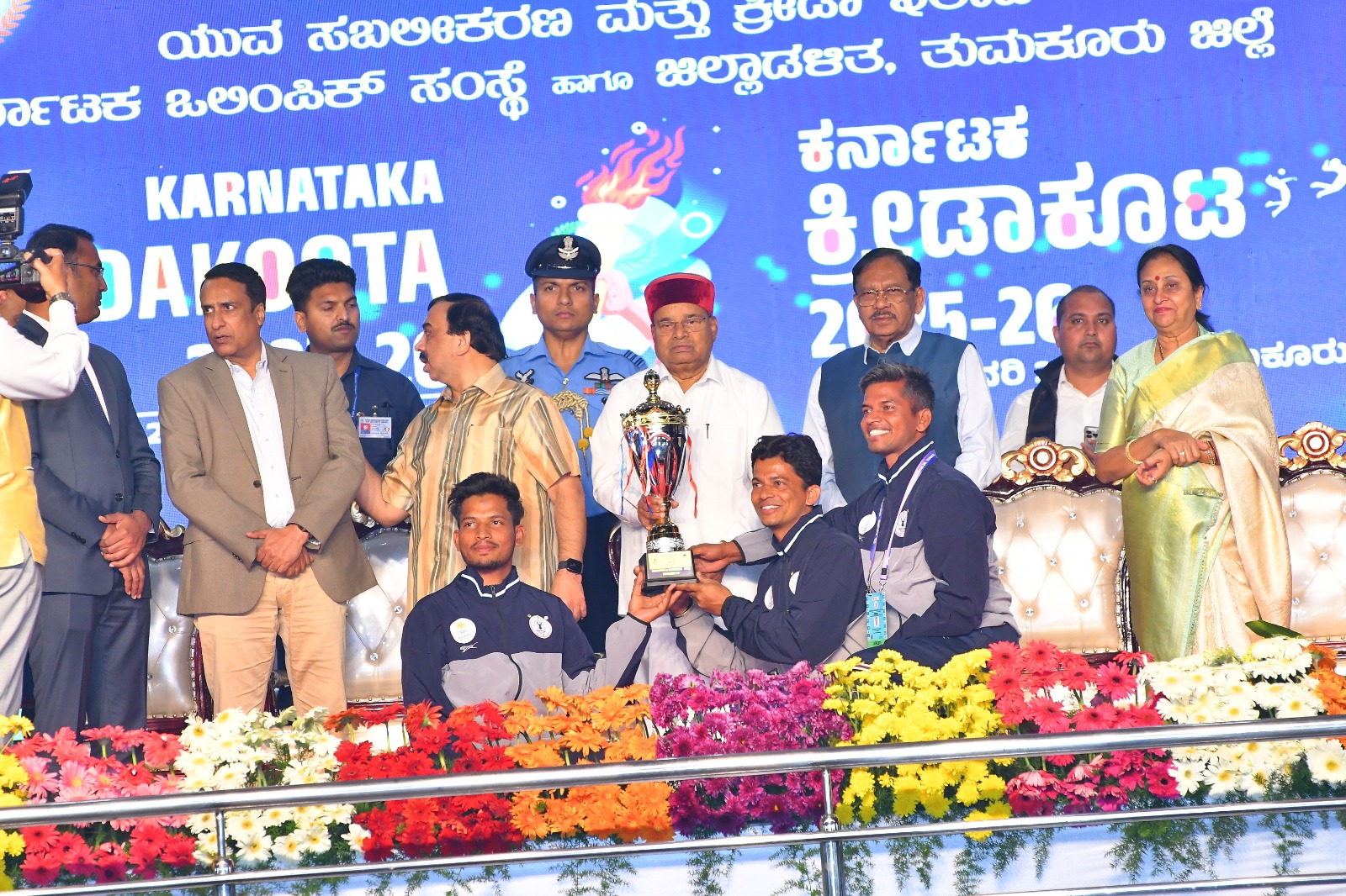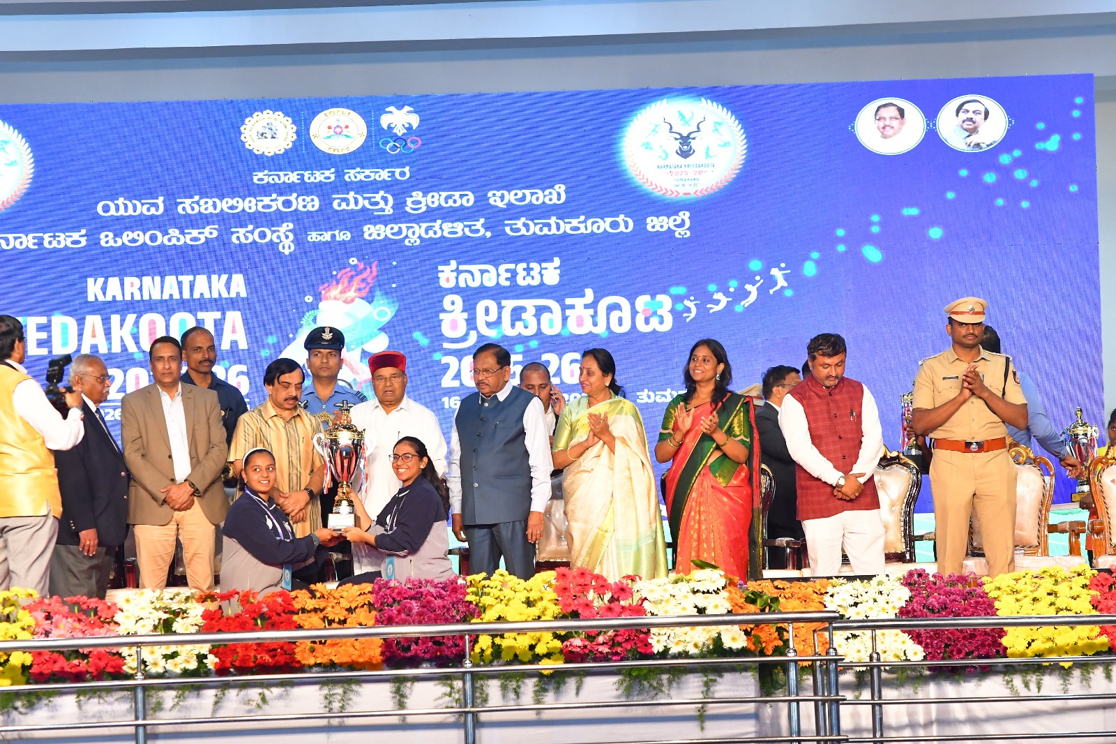 The Governor presented the Overall Championship Trophy to the Bengaluru Urban contingent.