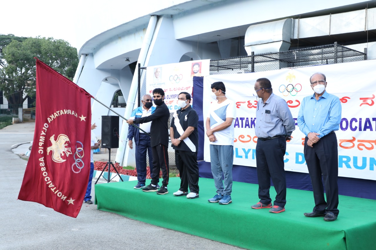 The Karnataka Olympic Association has organized the Olympic day Run symbolically at Shree Kanteerava Stadium at 7:30 Am.